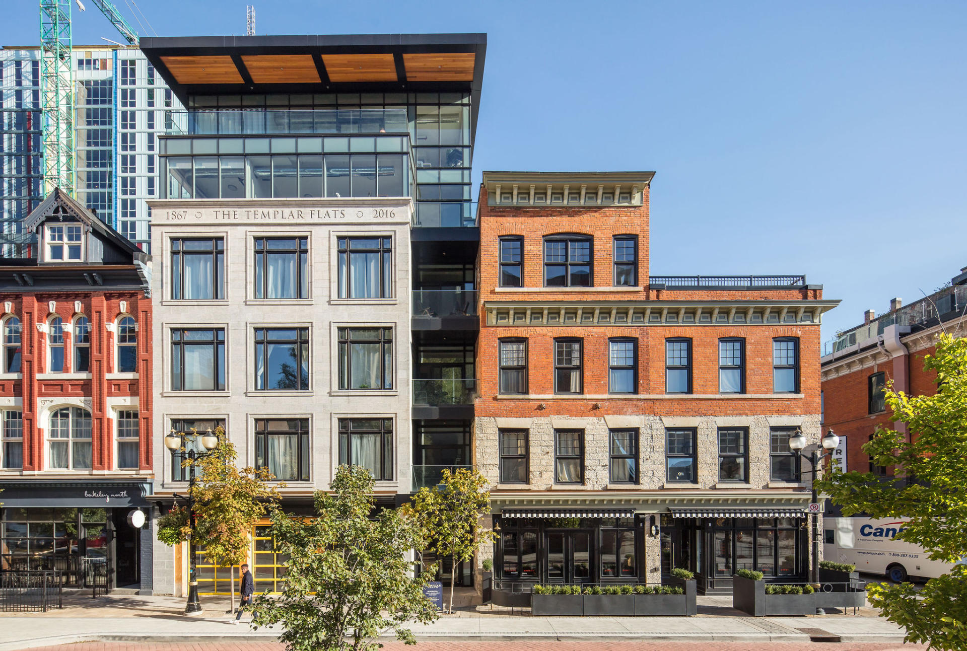 Across the street from The Empire Times, the Templar Flats is an adaptive reuse project that combines two existing structures with a new six storey structure built in between them. The ground level is home to dining hotspots The French, Berkeley North and Undefined, while the upper levels offer 25 rental apartments. Rapidly becoming a dining destination, King William Street is being transformed into one of Hamilton’s urban hotspots.