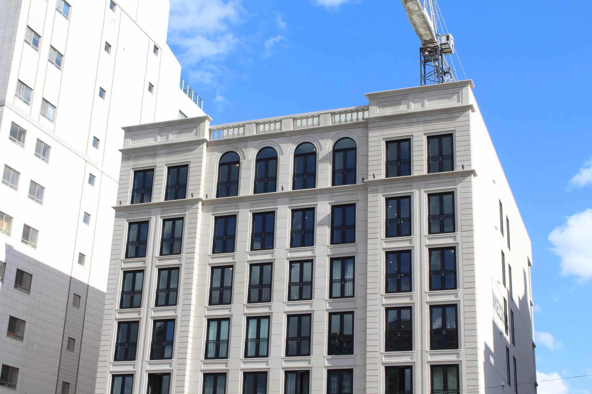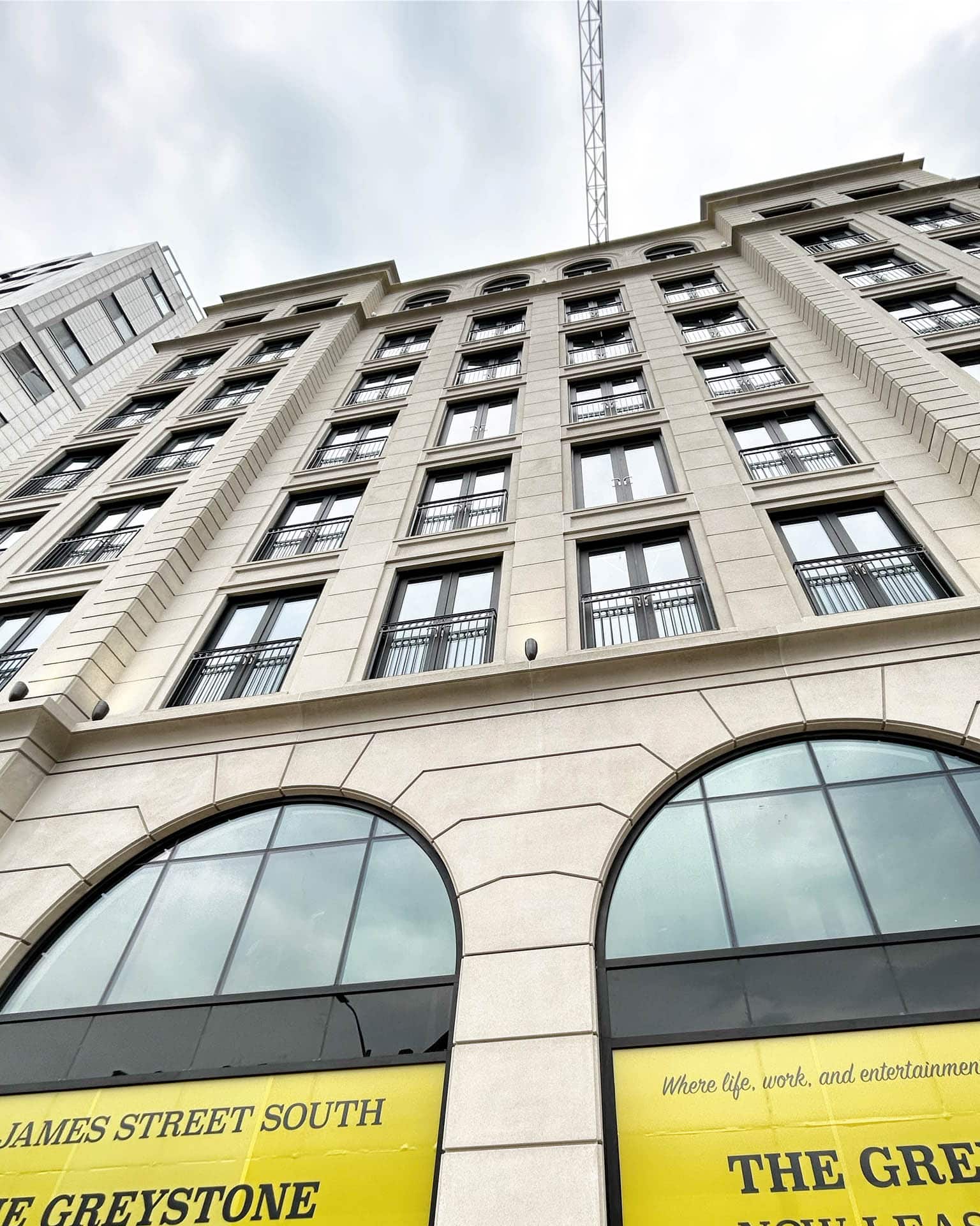 The Greystone is an 8 storey, 70,000 square foot luxury rental apartment building featuring 56 units, a soon-to-be 5,000 square foot grocery store on the ground floor, underground parking, a gym, and a rooftop patio.